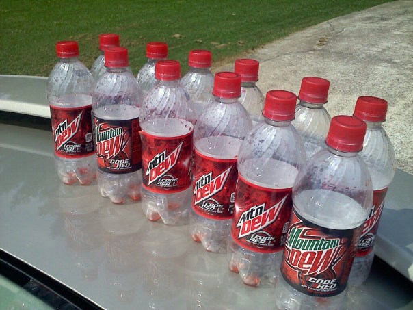 A few days’ worth of Mountain Dew bottles taken from my car when I was in the depths of my Dew-pravity.