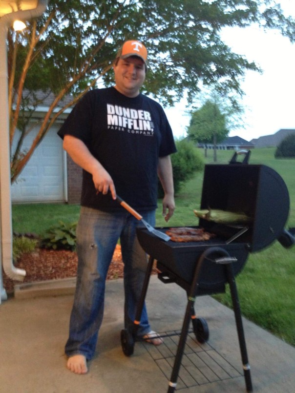A heftier Clint with his first grill.