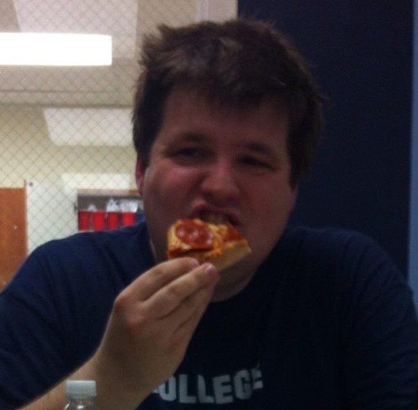 Some friends in college snapped this shot of me cultivating my pizza-eating skills.